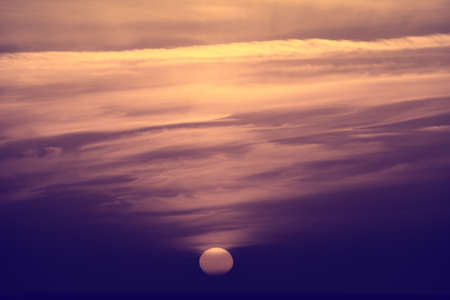 Cloudy sky at sunset or sunrise with bright sun. Abstract background for design.