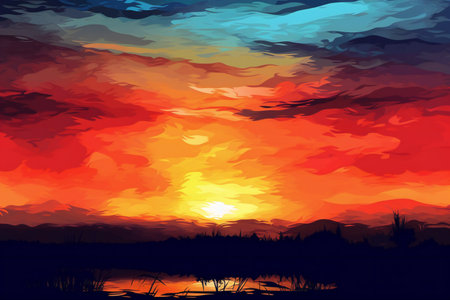 Beautiful sunset over the lake. illustration of a beautiful sunset.