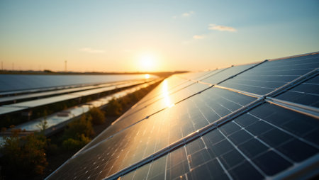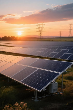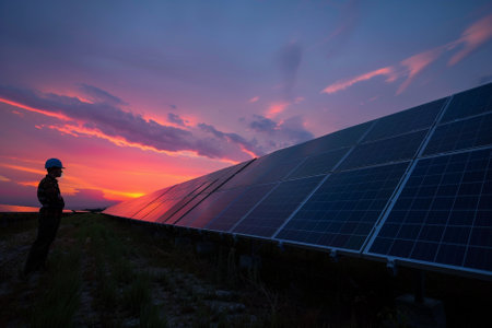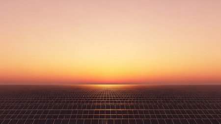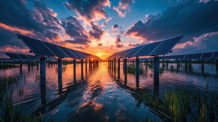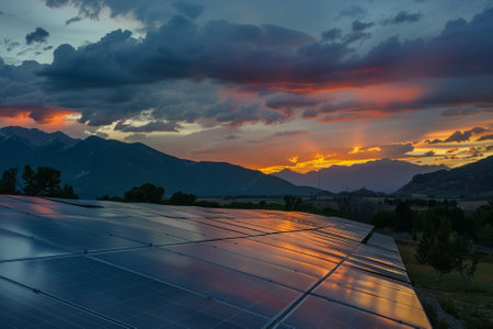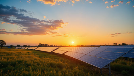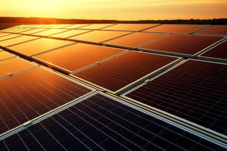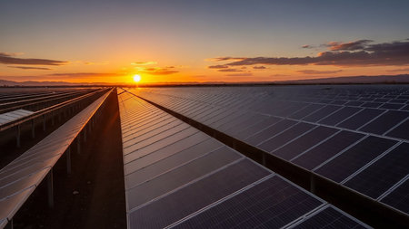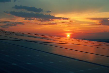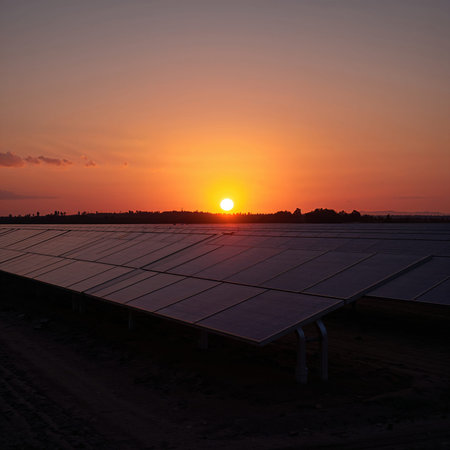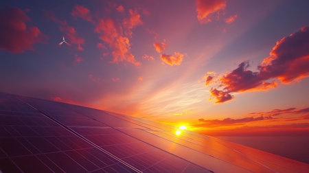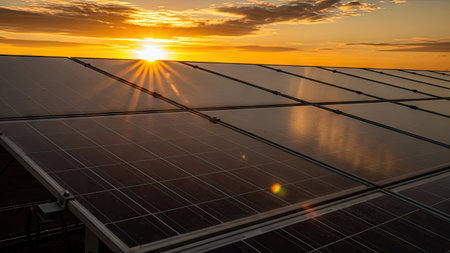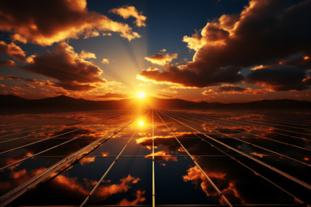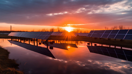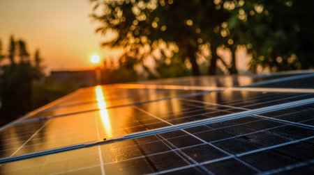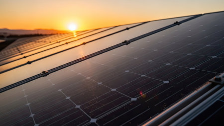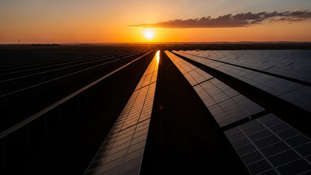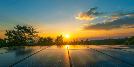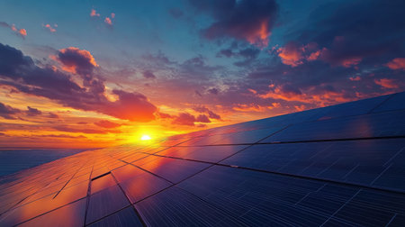 A captivating sunset illuminates solar panels, highlighting the importance of renewable energy technology. This image embodies sustainability and a brighter ecological future.