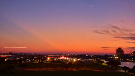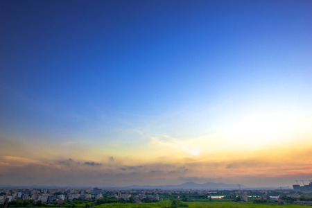 Beautiful landscape with sunset or sunrise scene of cityscape