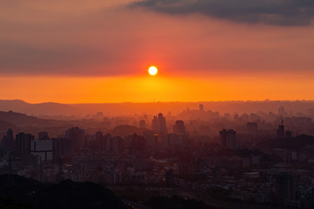 Sunset high angle view of the cityscape form Wenshan District at Taipei, Taiwan