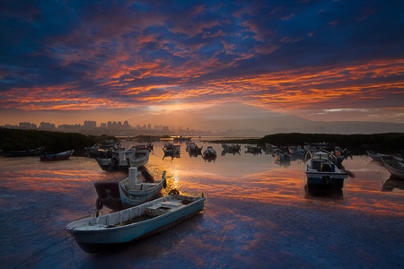 Last sunrise and fishing sub-dug with flash, the new Taipei, Taiwan