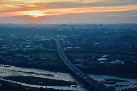 Sunset high angle view of the Jingmei area at Taipei, Taiwan