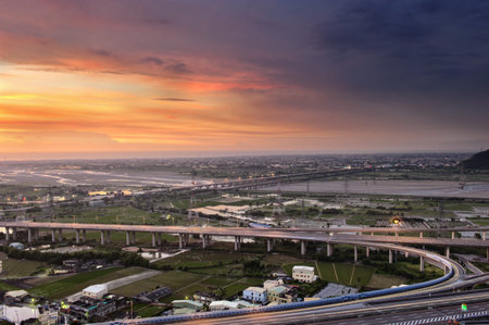 Residential and rural area in Chiayi during sunrise
