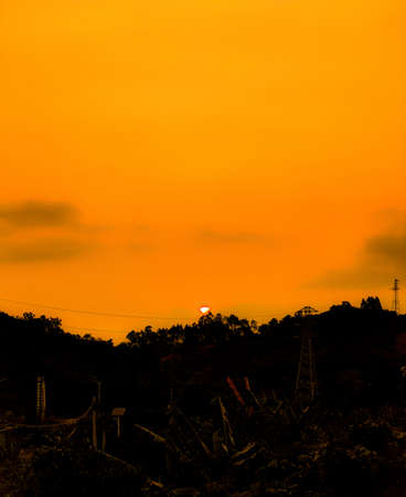 sunset scenery with orange clouds and sky at the Puli town, Nantou, Taiwan