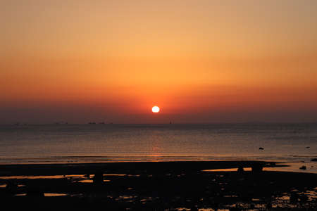 Sunset over the sea. Beautiful sunset over the sea. The sun goes down over the ocean.