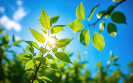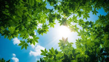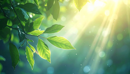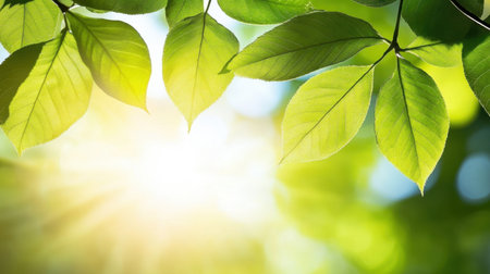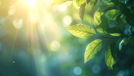 A captivating image showcasing fresh green leaves illuminated by sunlight, creating a vibrant and serene atmosphere. Ideal for nature-inspired themes.