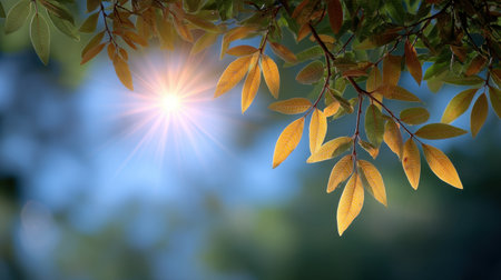 Bright sunlight filters through lush leaves in a serene natural environment, creating a peaceful atmosphere perfect for nature lovers and outdoor enthusiasts.