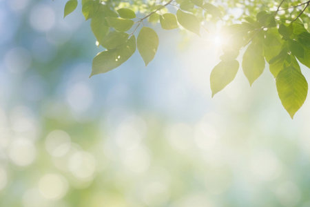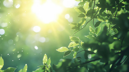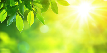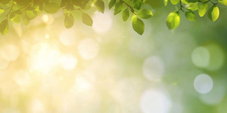 Vibrant Green Leaf Bokeh with Sunlight Background, Perfect for Nature Themes and Summer Vibes