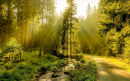 Warm rays through forest trail
