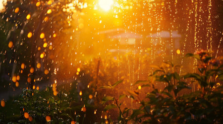 Liquid Sunshine Macro View of Raindrops in Golden Light