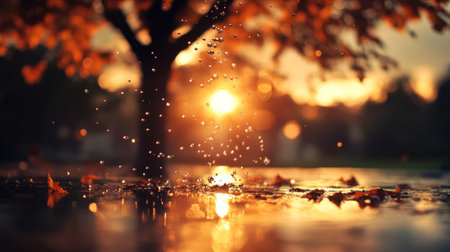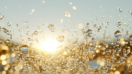 Tranquil Radiance Sunlit Water Droplets in the Evening