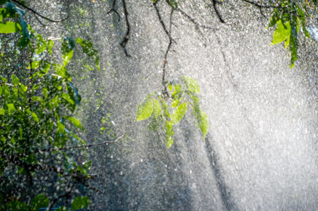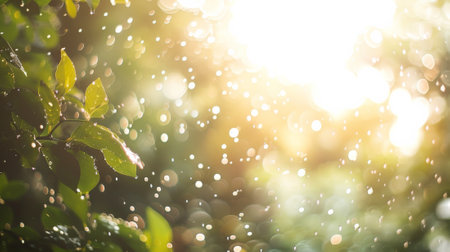 Immerse yourself in the beauty of nature during the summer season Experience the refreshing sensation of raindrops on lush green leaves