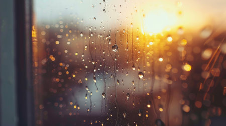 Raindrops on Window Evaporating at Sunrise Symbolizing Fleeting Emotions and Moments