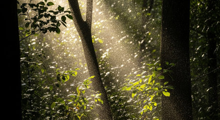 Enchanting Sunshine Forest Dream with Blurring Sun Rays, Sparkling Illumination and Tranquil Vibes