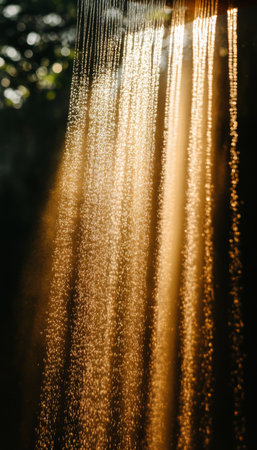 Golden Sunlight Shining Through Water Splashes During Enchanting Songkran Festival Celebration.