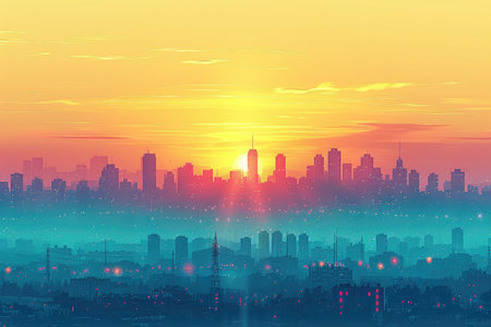 Breathtaking urban cityscape at sunset with vivid skies and warm lighting