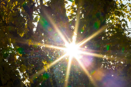 Abstract sunbeams with lens flare effect. Summer nature background.