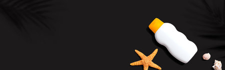Sunblock bottle starfish and seashells