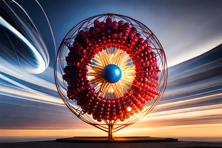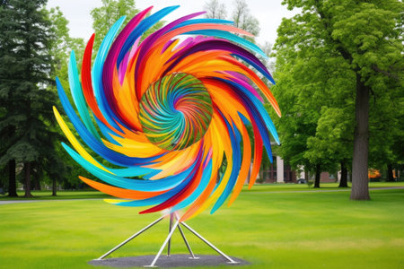 colorful spinning wind sculpture in a park, created with generative ai