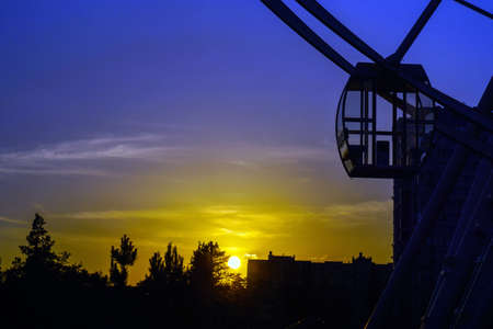Ferris wheel on the background of the sunset in the park.