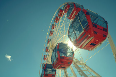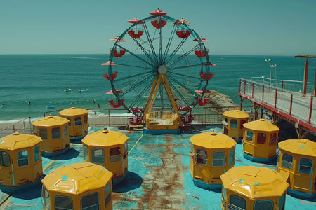 An awe-inspiring panoramic view from atop a magnificent Ferris Wheel. This stunning image captures the excitement and wonder of the amusement park from high above, offering a unique perspective on the world below