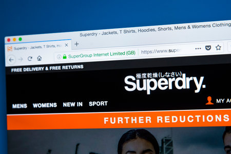 LONDON, UK - JANUARY 8TH 2018: The homepage of the official website for Superdry - owned by SuperGroup plc - the British international branded clothing company, on 8th January 2018.