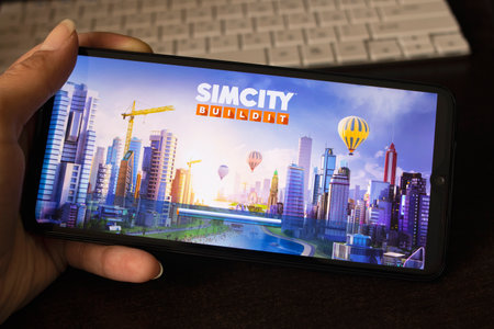 BELARUS, NOVOPOLOTSK -16 MAY, 2021: Sim City Buildit on phone close up