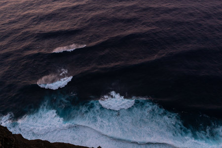 A high angle shot of beautiful sea waves in Madiera, Portugal