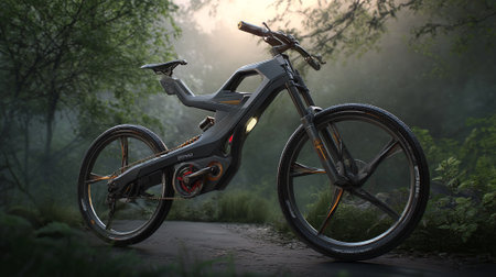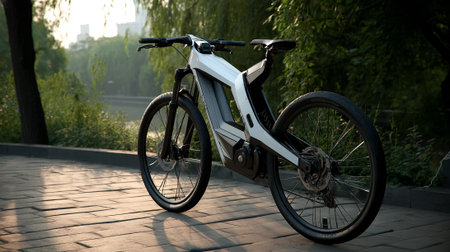 Futuristic Electric Motorcycle Displayed Outdoors at Sunset for Innovative Tranation