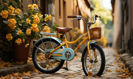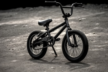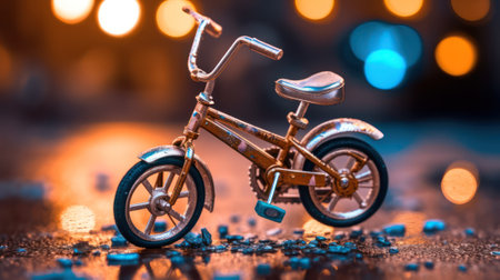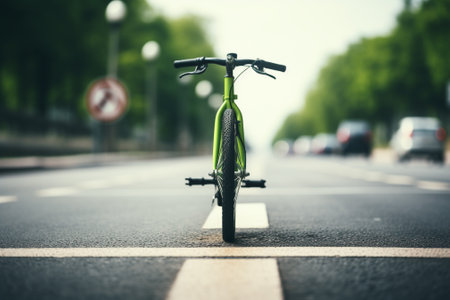 Close-up of a childrens bicycle on a city street. bicycle on the roadway without a child . life insurance and protection concept.Generative AI