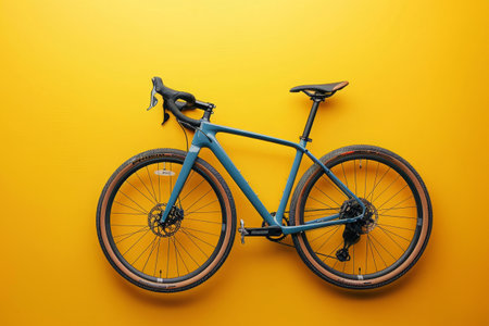 Gravel bike on yellow background with copy space. Road sport bike, close up. Minimalist backdrop with bicycle