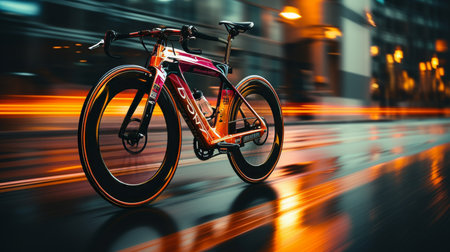 Dynamic Urban Cycling at Night. Generative ai. High quality illustration