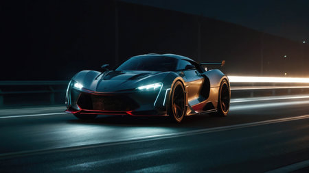 AI Generated. Futuristic Racing Car with Neon Lights in Motion on a Dark Background Capturing Speed and Technology