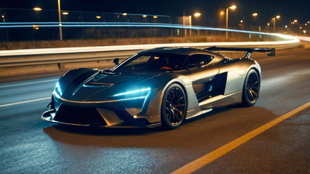 Rush of Adrenaline: A Supercar Zooming Down a Clear Highway