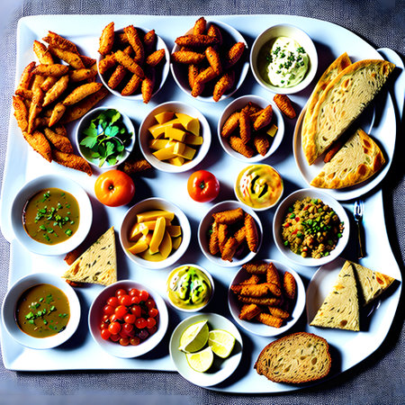 A table with food, top view, AI Generative Illustration Graphic Design Art Icon Symbol Sign Logo