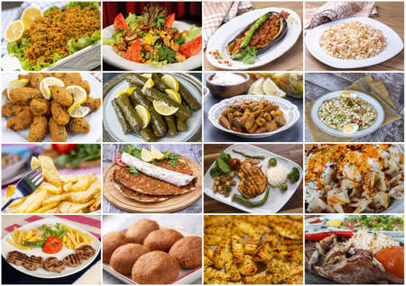 Traditional Turkish foods collage. Selective focus. Food background.