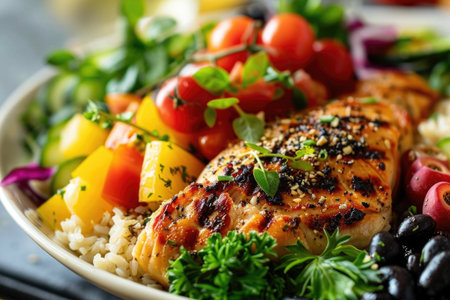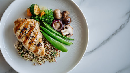 grilled chicken breast with quinoa and vegetable - healthy food style