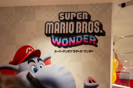 Tokyo, Japan, October 29, 2023: Super Mario Bros Advertisement in a Store Window