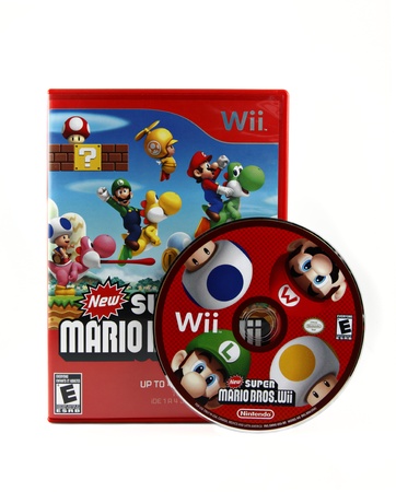 Springfield, Missouri - March 17, 2011: An isolated studio shot of the popular video game New Super Mario Bros. Wii for the Nintendo Wii gaming system.