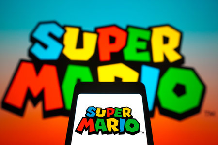 February 5, 2024, Brazil. In this photo illustration, the Super Mario logo is displayed on a smartphone screen and in the background