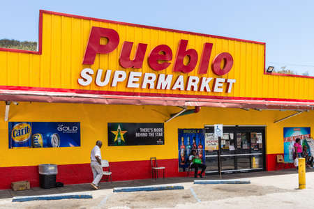 Charlotte Amalie, St. Thomas, US Virgin Islands (USVI) - April 30, 2019: Local people near the Pueblo Supermarket Long Bay at St Thomas, U.S. Virgin Islands, Caribbean.