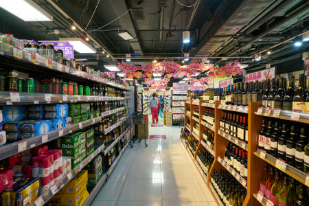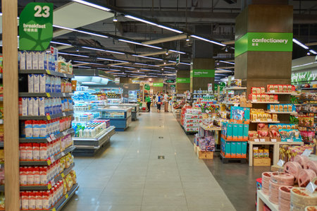 SHENZHEN, CHINA - JANUARY 22, 2015: supermarket interior in ShenZhen. ShenZhen is regarded as one of the most successful Special Economic Zones.
