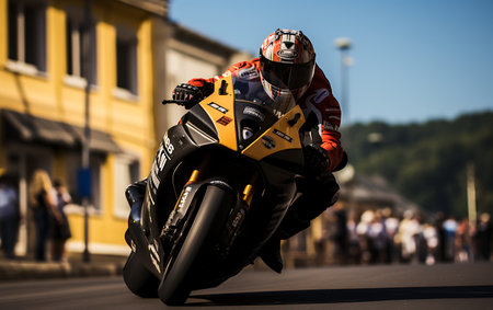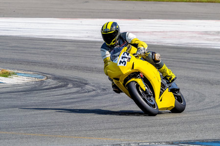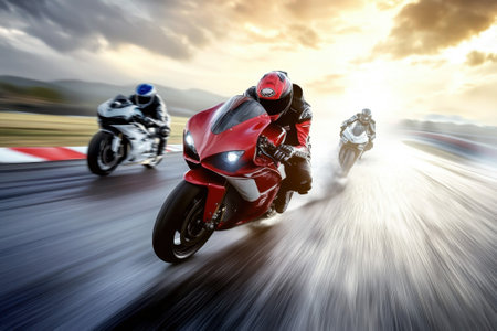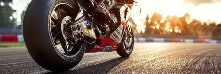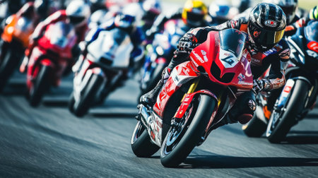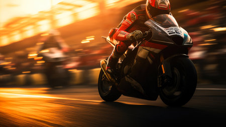 Super motorbike racing on the circuit track while driving at high speed and accelerating at full power AIG44