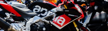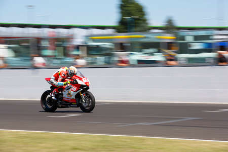Misano Adriatico, Italy - June 21, 2015: Aprilia RSV4 RF of Aprilia Racing Team - Red Devils, driven by TORRES Jordi in action during the Superbike Race 2 during the FIM Superbike World Championship - Race at Misano World Circuit on June 21, 2015 in Misan