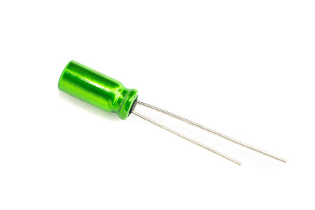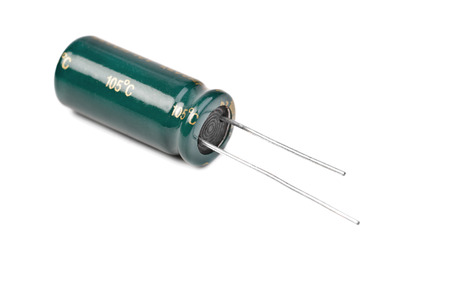 Electrolytic capapacitor isolated on a white background close up