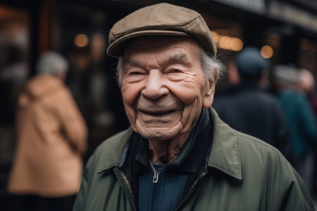 Portrait of an elderly man in a cap on the street.