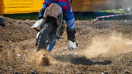 Motocross rider in action. Motocross sport. Close-up photo. Active extreme rest.