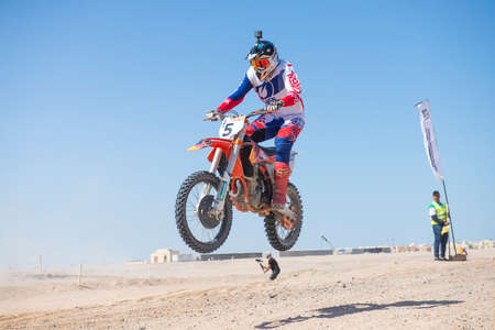 EL GOUNA, EGYPT - APRIL 2nd 2021: El Gouna Motocross competition on April 2nd 2021 in El Gouna, Egypt. The first day of racing in the desert rally.