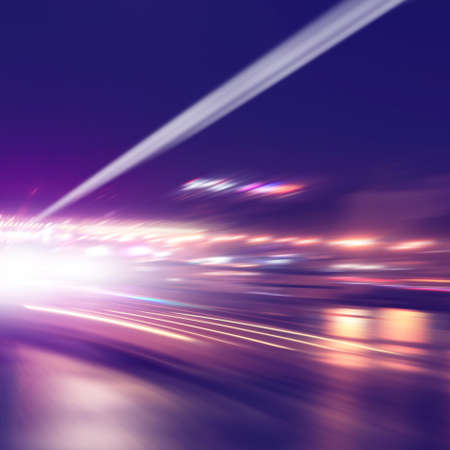 Colorful city lights blur, motion speed, urban tunnel, vibrant night